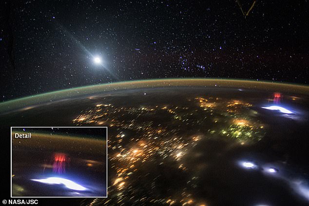 Some of the most fascinating TLEs include "sprites," which appear like gigantic red jellyfish reaching their tendrils above the clouds. The largest sprites can extend up to 60 miles (96 kilometers) above the cloud tops of large storms, but they are so faint that they can only be seen at night or from space.